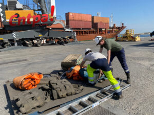 C’est une manutention un peu particulière qu’ont effectué aujourd’hui les dockers de la société Barra SNM.